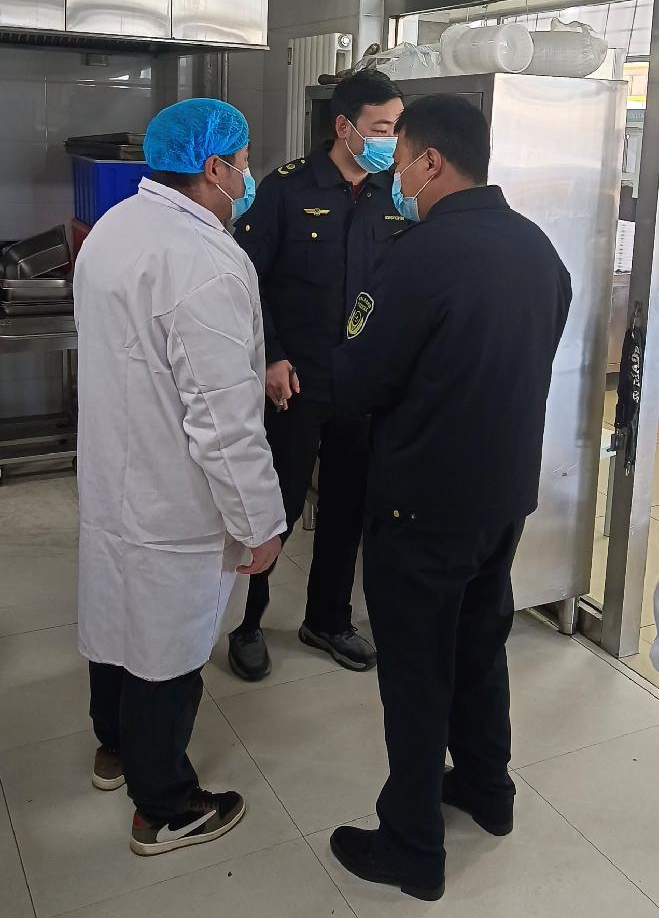3月1日,新城区海东路市场监督管理所工作人员来米乐官网指导食品安全工作,校党委委员、副校长刘瑞鸿陪同检查。