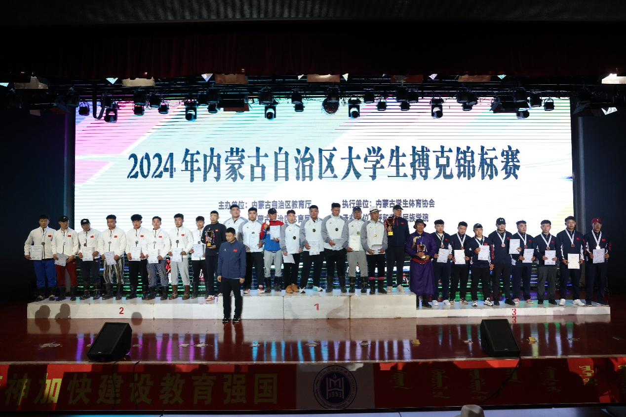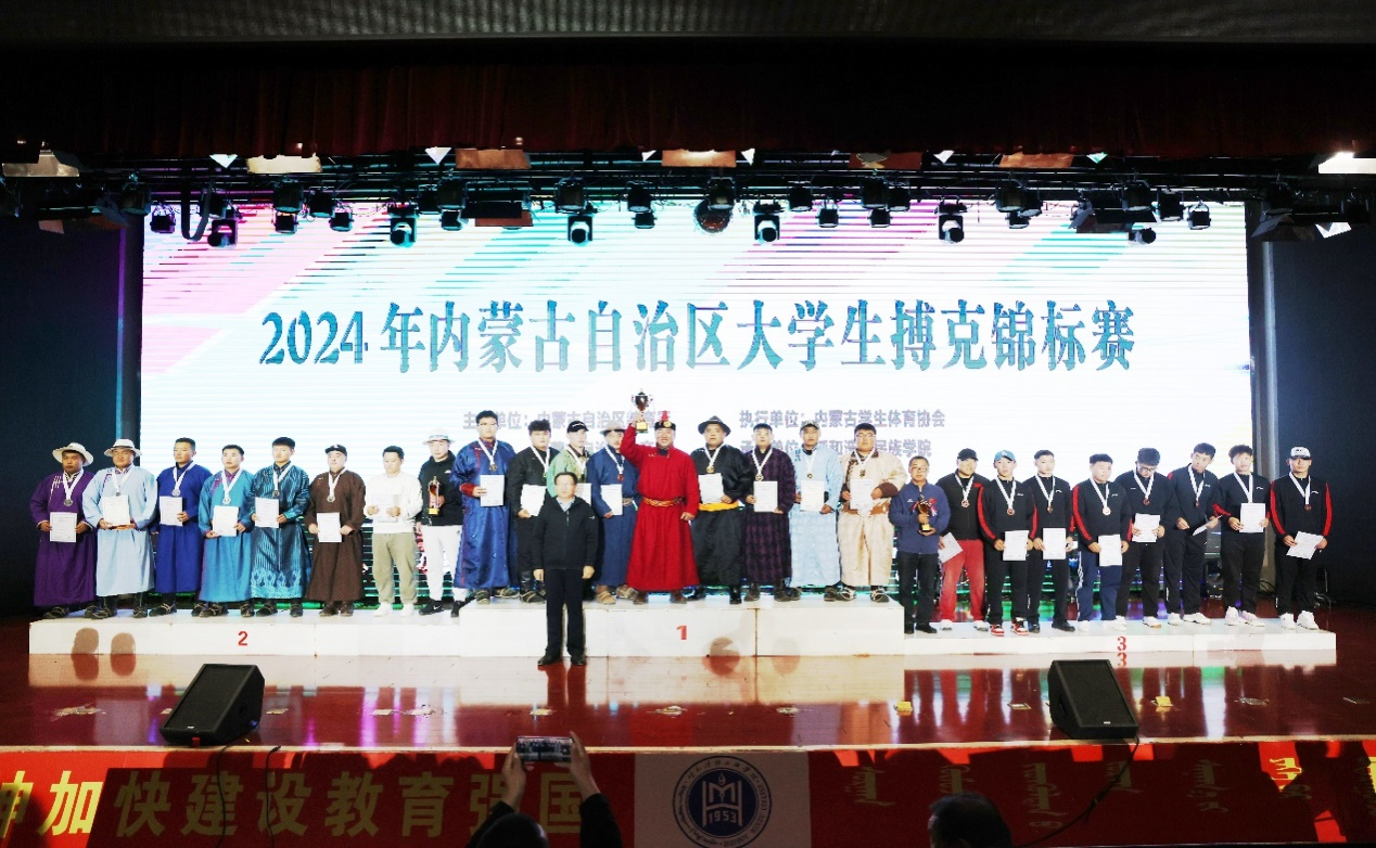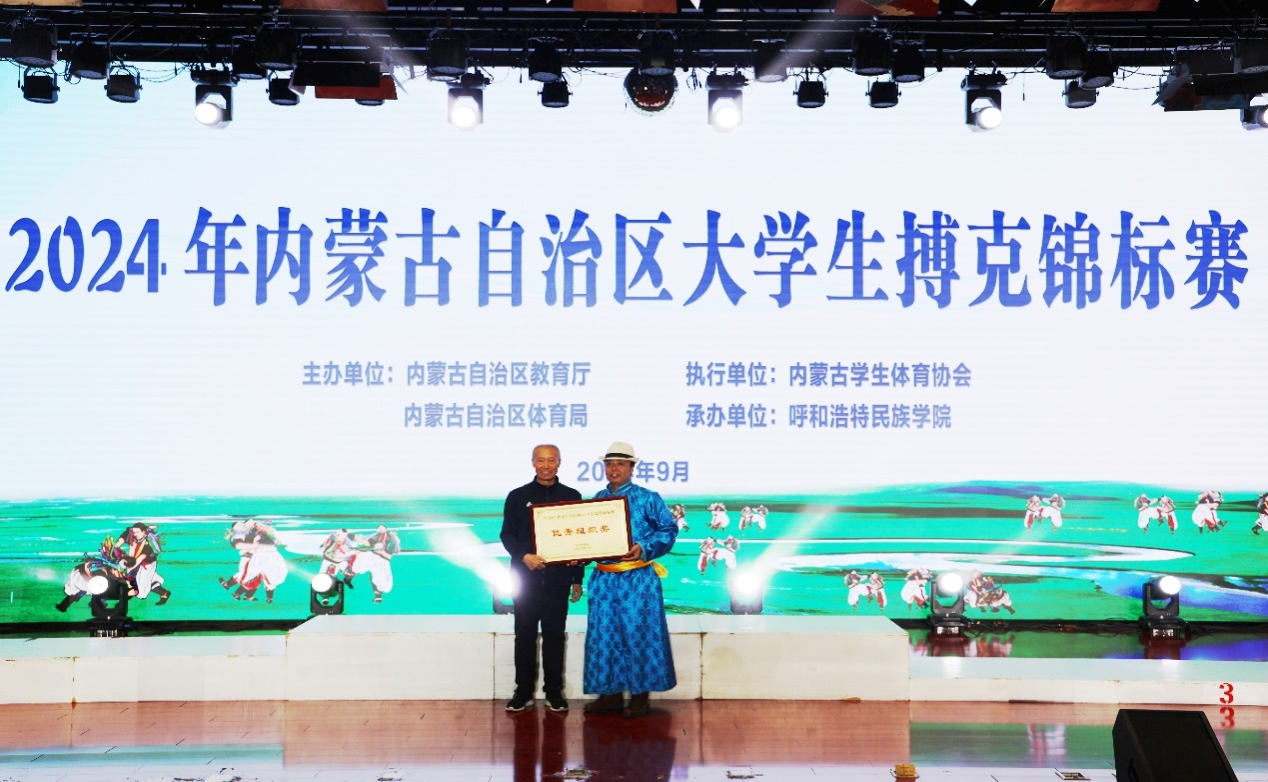 9月29日,2024年古内蒙古自治区大学生搏克锦标赛闭幕式在铸牢教育馆二楼举行,校党委委员、副校长刘瑞鸿等相关单位领导参加闭幕式并为获奖运动员颁奖。