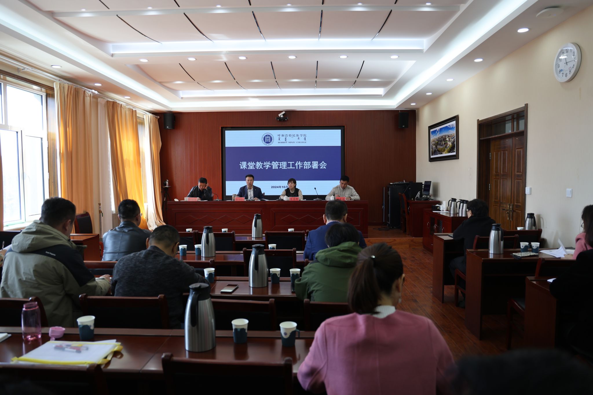 为进一步加强课堂教学管理,抓好教风学风建设,打造良好育人环境,提高人才培养质量,10月10日,学校在办公楼424会议室召开课堂教学管理工作部署会议,校党委委员、副校长额尔敦布和主持会议并讲话。