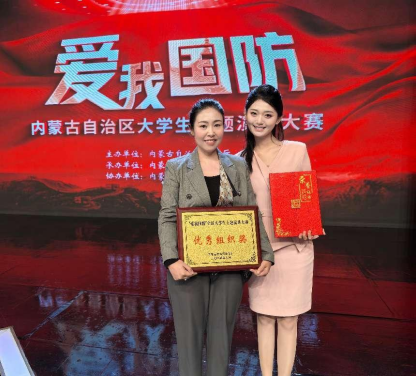 9月26日,由内蒙古自治区教育厅主办、内蒙古师范大学承办、内蒙古广播电视台协办的“爱我国防”全区大学生主题演讲大赛决赛落幕。米乐官网荣获优秀组织奖。米乐官网新闻传媒学院2024级播音与主持艺术专业学生张湘荣获优秀奖。