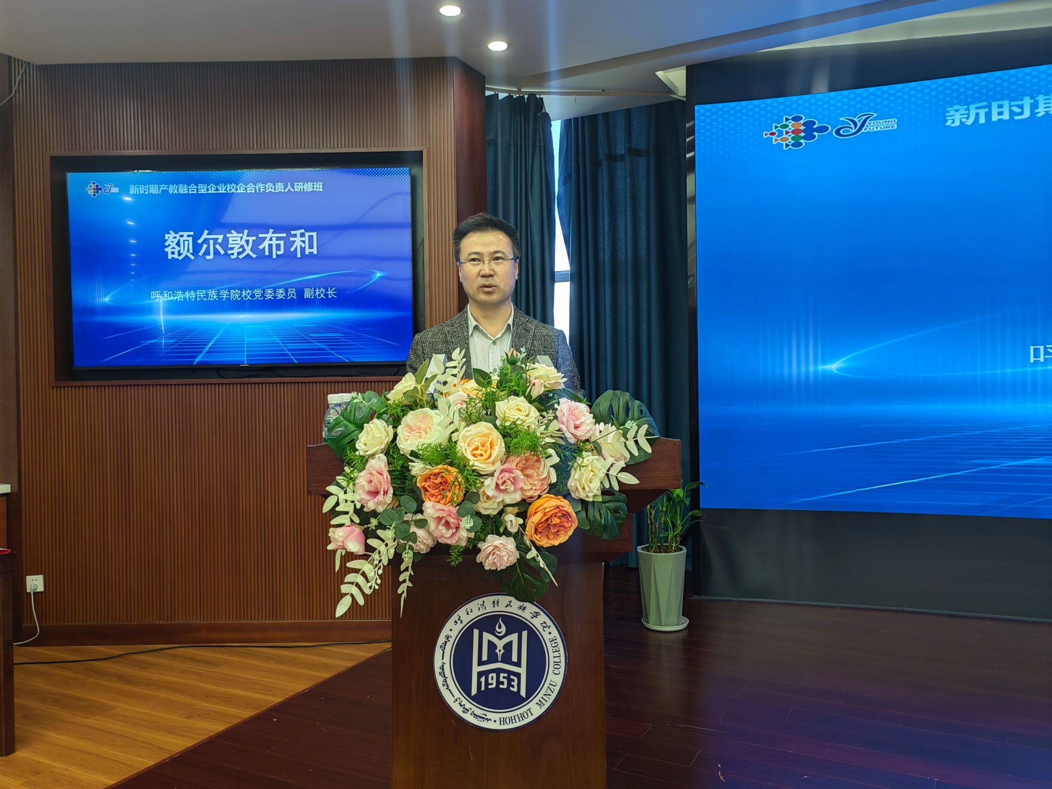 额尔敦布和在致辞中代表学校向学员们表示了热烈的欢迎,他表示,新时代的征程上,教育与产业的深度融合已成为推动经济社会高质量发展的关键力量,未来将坚持以推动高质量发展为主题,聚焦深化产教融合,不断探索和实践产教融合的新路径、新模式,优化专业设置,强化实践教学环节,优化人才培养结构,努力培养更多符合社会需求的高素质应用型人才,全面推进学校高质量发展。