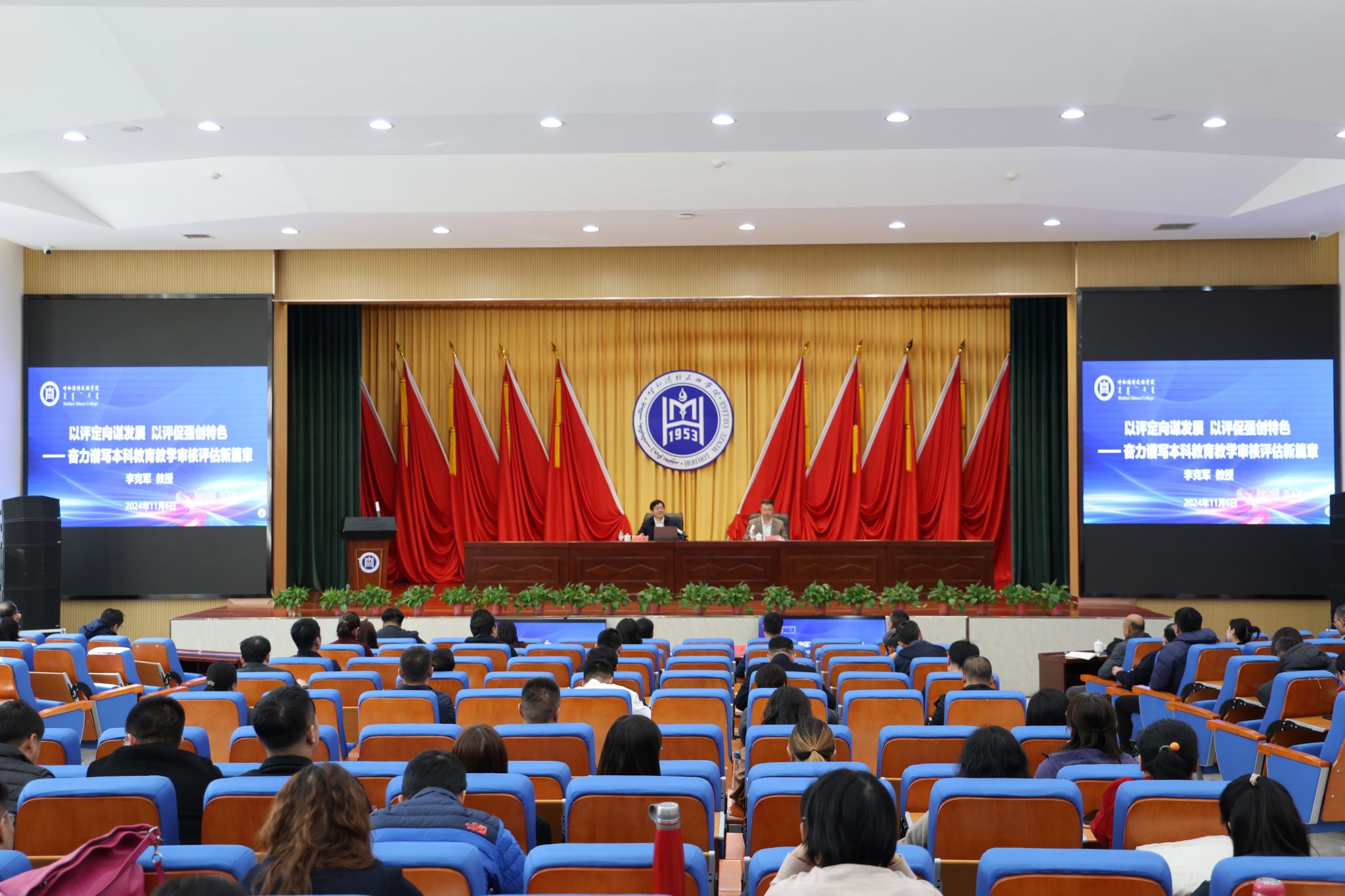 为做好米乐官网本科教育教学审核评估工作,推进学校教育教学高质量发展,11月6日下午,学校邀请教育部师范类专业认证专家、教育部本科教育教学审核评估专家、河北民族师范学院副校长李克军教授在学术报告厅作了题为《以评定向谋发展 以评促强创特色—奋力谱写本科教育教学审核评估新篇章》的主题讲座。校党委委员、副校长高喜天,党委委员、副校长额尔敦布和,党委委员、副校长双虎出席会议,讲座由额尔敦布和主持。