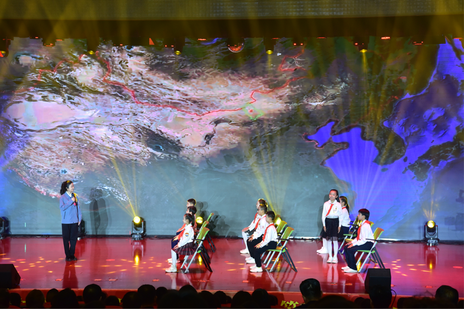 颁奖典礼现场,歌伴舞《名字叫中国》拉开了典礼的序幕,精彩节目与优秀作品逐一亮相,同学们用歌声和舞蹈表达对祖国的热爱。