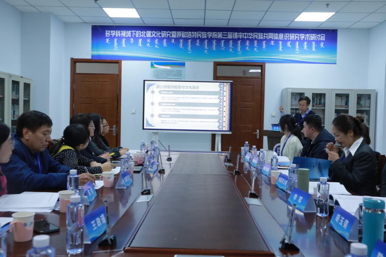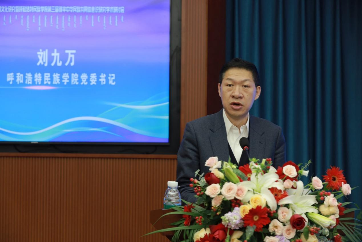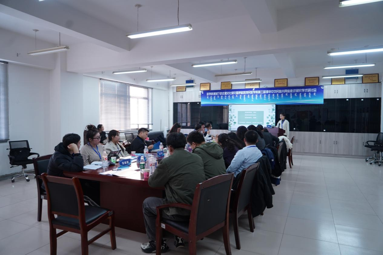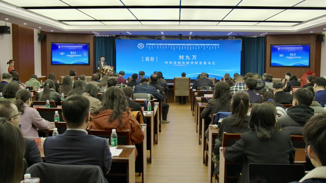 11月23日,学校铸牢中华民族共同体意识研究基地、蒙古族非物质文化遗产研究基地、北疆文化传播实践中心、新时代内蒙古三少民族语言文化研究基地联合举办了 “多学科视域下的北疆文化研究暨第三届铸牢中华民族共同体意识研究学术研讨会"。来自中国社会科学院、中国人民大学、兰州大学、新疆师范大学以及区内外各高校、科研机构的100余名专家学者出席本次学术研讨会。国家民委教育司一级巡视员周晓梅,自治区民委党组成员、副主任云冰,内蒙古自治区人大科教文委副主任委员、内蒙古日报社原总编辑、社长吴海龙,中国社会科学院蒙古学研究中心主任包胜利,内蒙古广播电视台新闻中心摄像部原主任、高级编辑包金花,内蒙古自治区民委理论研究处处长张玲玲等嘉宾应邀出席研讨会。校党委书记、铸牢中华民族共同体意识研究基地主任刘九万出席会议并致开幕辞。校党委副书记格根哈斯主持研讨会开幕式。校党委委员、副校长额尔敦布和主持研讨会主旨报告环节。
