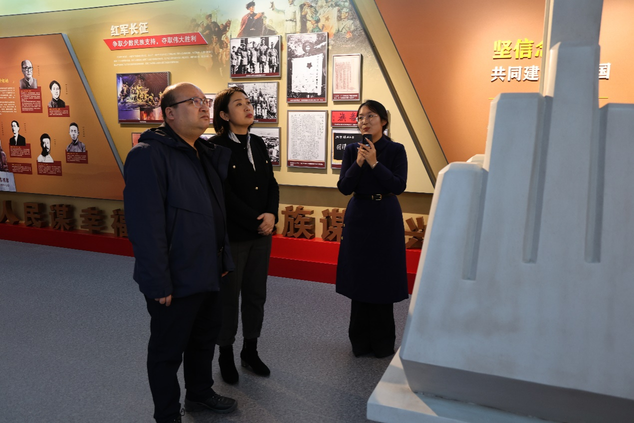 孙林一行参观考察了校史馆、铸牢中华民族共同体意识教育馆、非遗体验馆等校内场馆和时代楷模人物长廊及民族团结进步文化长廊。