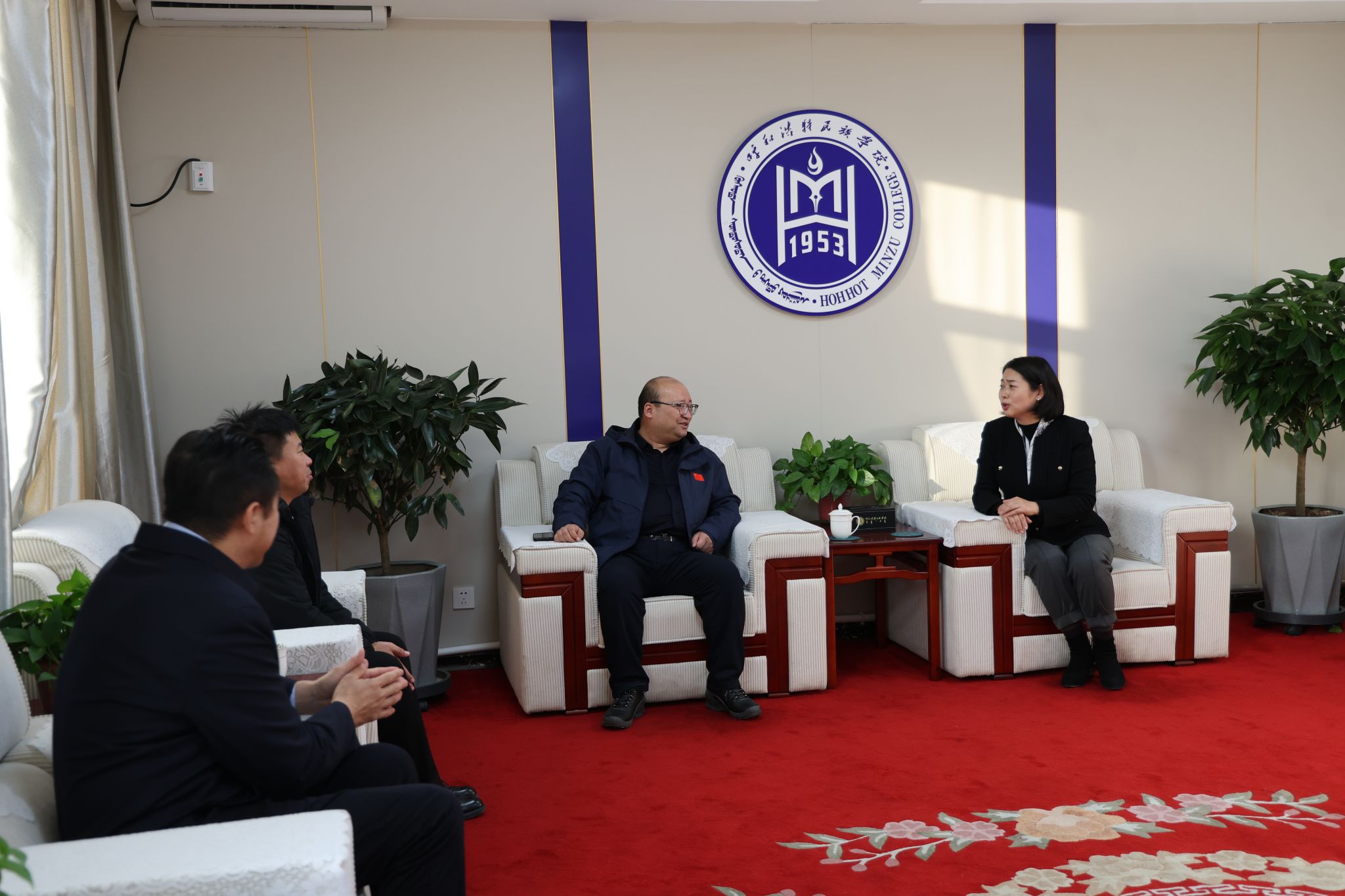 11月12日,内蒙古民族大学党委委员、宣传部部长孙林一行来米乐官网考察调研。校党委副书记格根哈斯会见了孙林一行,并介绍了学校在全面贯彻落实铸牢中华民族共同体意识主线,以推进“两馆两廊一园”阵地建设和使用为抓手,持续加强铸牢中华民族共同体意识宣传教育和教学科研,发挥全国民族团结进步示范学校模范作用的经验做法。