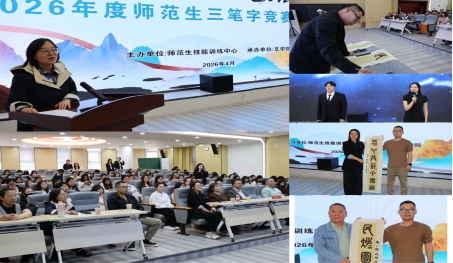 为夯实师范生教学基本功,传承中华优秀文化,4月9日,由师范生技能训练中心主办、文学院承办的“书写民族魂·笔力绘团结”2026年度师范生三笔字竞赛决赛如期举行。经过各师范专业初选初赛推荐,110名同学进入决赛,比赛设置钢笔字、粉笔字、毛笔字三项书写内容,同学们在一笔一画间尽显扎实的书写功底与良好的师范生精神风貌。优秀作品在尚智楼二楼大厅进行了集中展示。