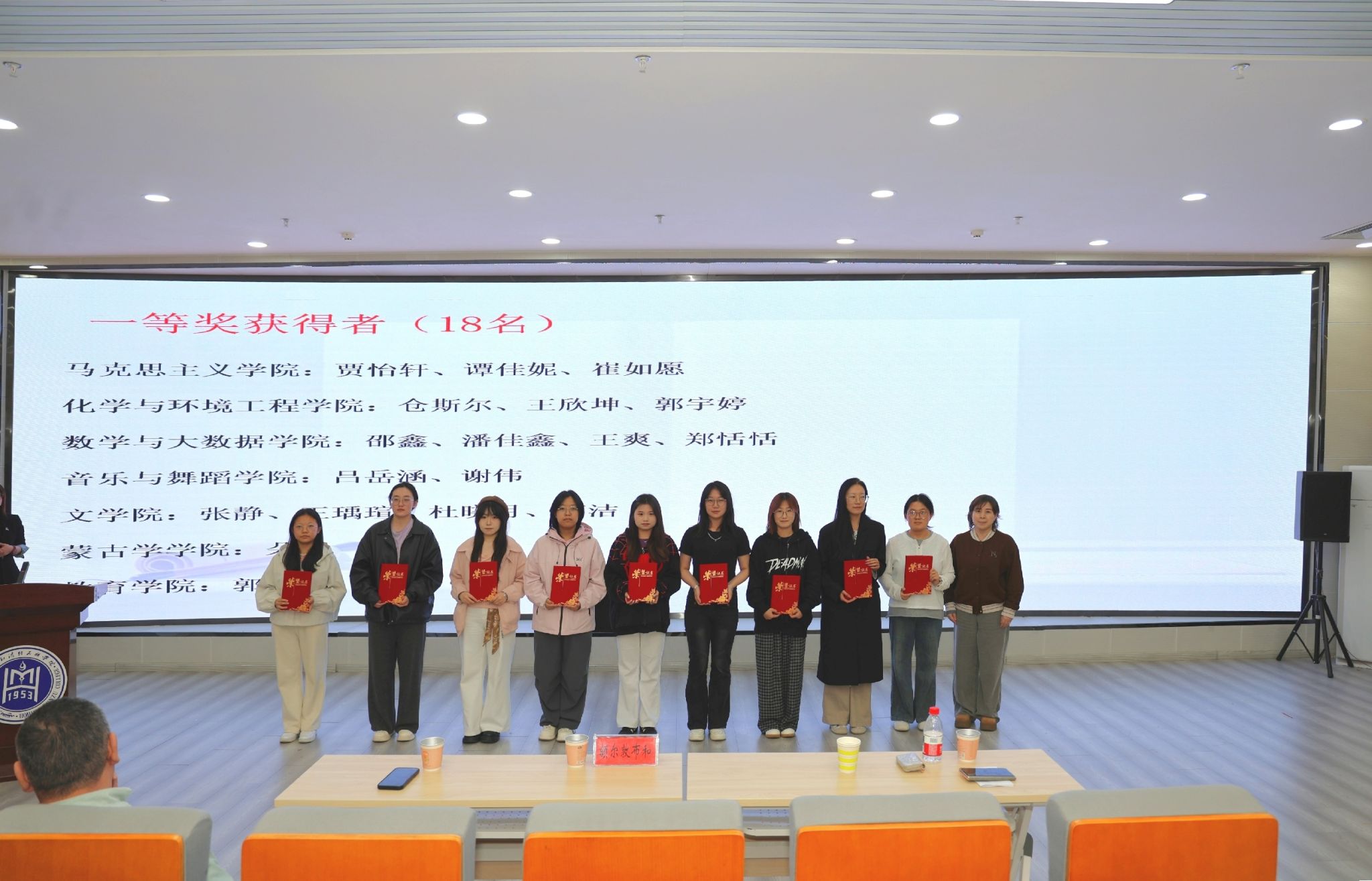4月16日,颁奖仪式在铸牢中华民族共同体意识教育馆一楼报告厅举行。校党委委员、副校长额尔敦布和出席仪式并致辞。他指出,“三笔字”是师范生的核心教学技能,更是传承中华优秀传统文化、凝聚民族团结力量的重要载体。他勉励同学们以赛促学、以学促练,不断夯实专业基础、锤炼过硬本领。美术与设计学院教师王天翼现场挥毫泼墨,为本次活动增添了浓厚的文化韵味。