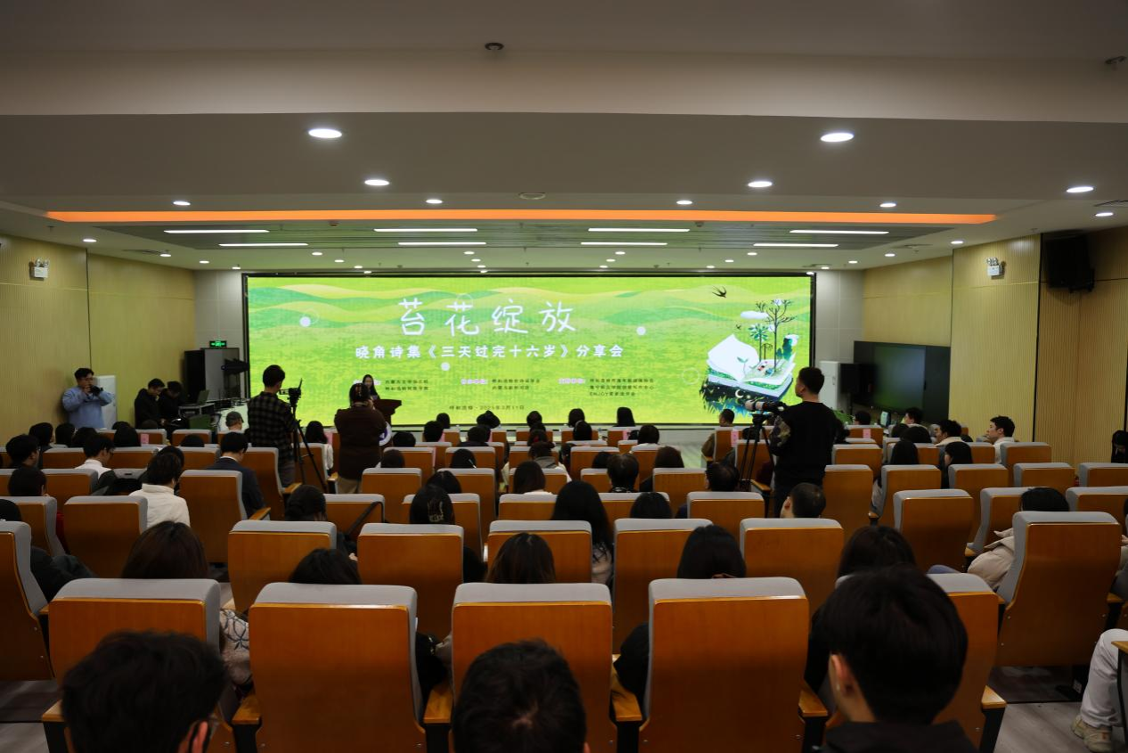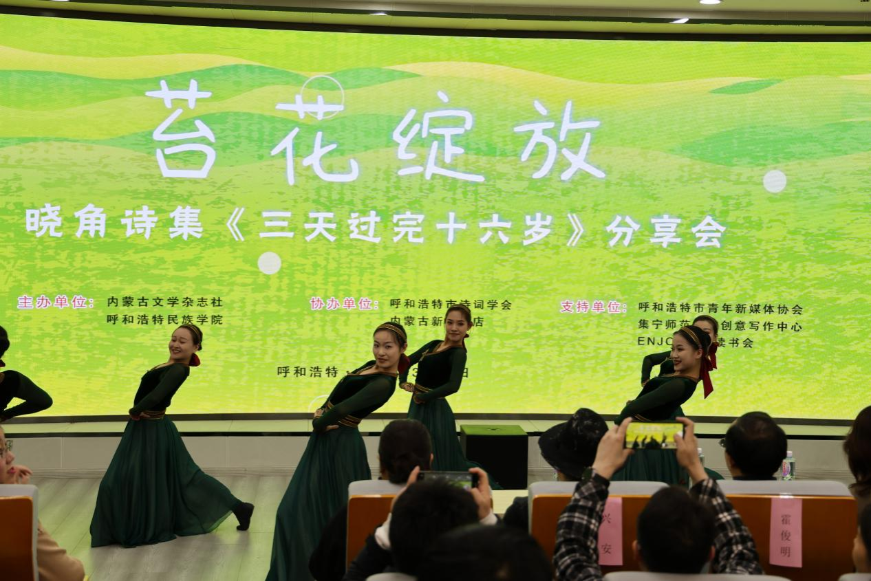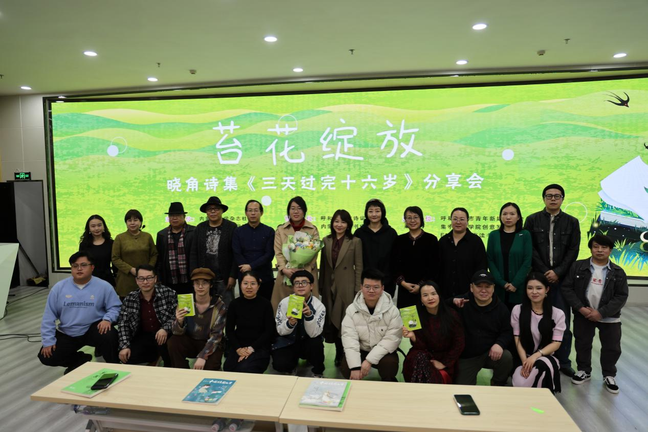 3月11日,由米乐官网和内蒙古文学杂志社共同主办,呼和浩特市诗词学会、内蒙古新华书店协办的苔花绽放——晓角诗集《三天过完十六岁》分享会在米乐官网铸牢馆一楼报告厅举办。活动同时得到呼和浩特市青年新媒体协会、集宁师范学院创意写作中心、英卓读书会的支持。