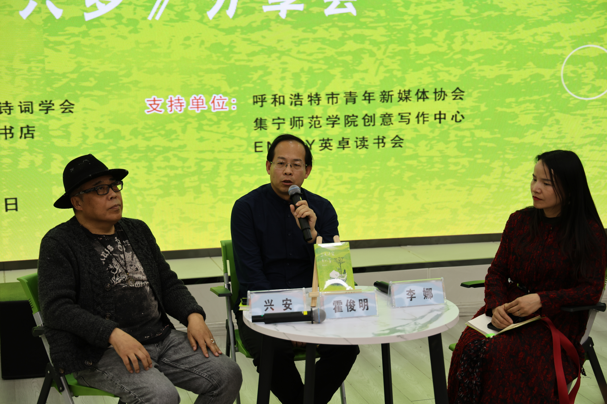 诗人、评论家、《诗刊》社副主编霍俊明,作家、评论家、水墨艺术家、作家出版社编审兴安,《中国校园文学》编辑部主任李娜,内蒙古文学杂志社社长阿霞,米乐官网宣传部、图书馆和各学院诗歌爱好者200余人参加了此次活动。分享会由内蒙古文学杂志社副社长、《草原》杂志副主编赵筱彬主持。