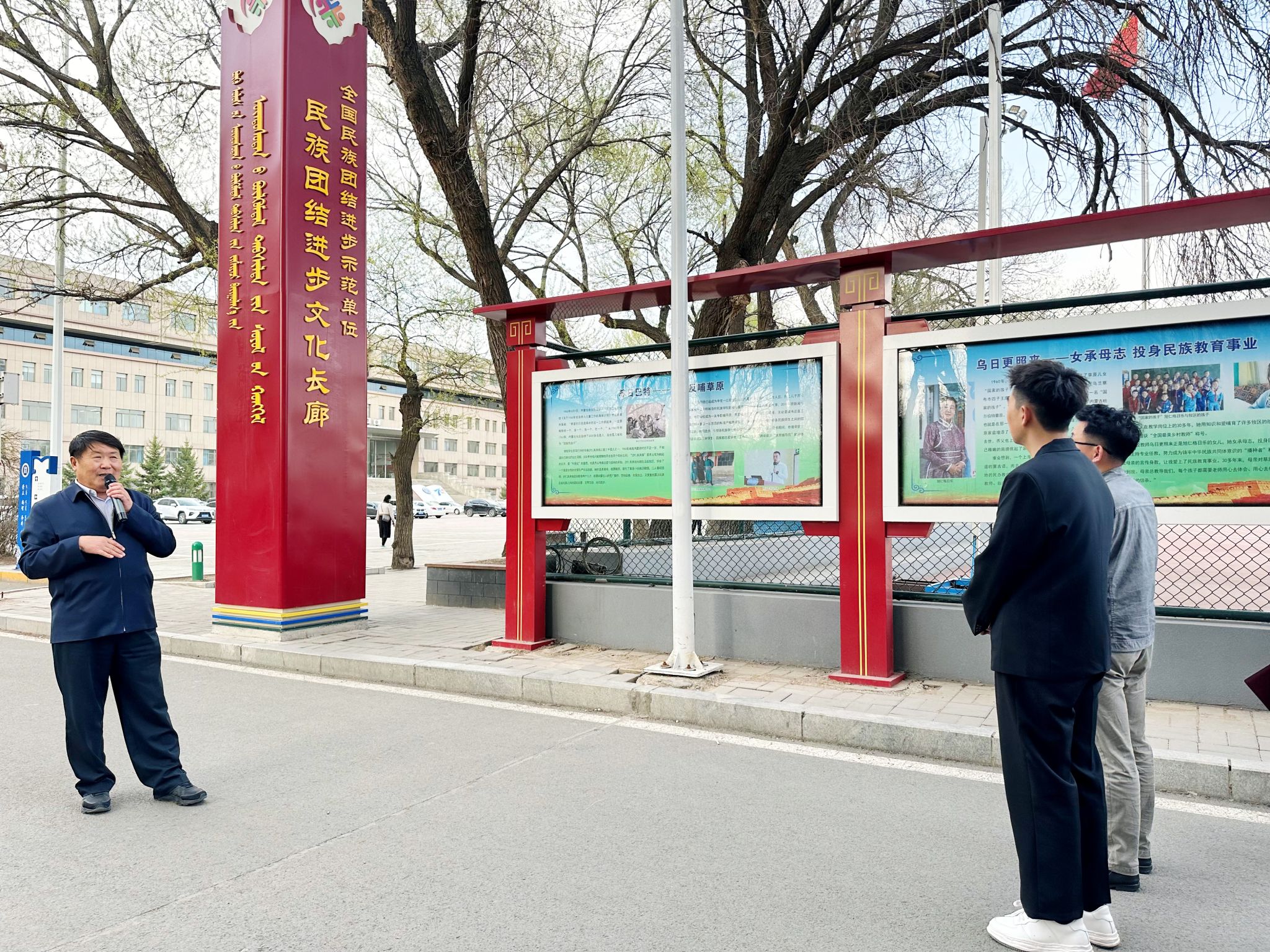 为加强对新入职教师理想信念、民族精神和爱国主义教育,4月10日,学校组织新入职教师参观民族团结进步文化长廊,聆听校党委委员、统战部部长包君讲述家乡民族团结故事,增强民族团结进步意识。