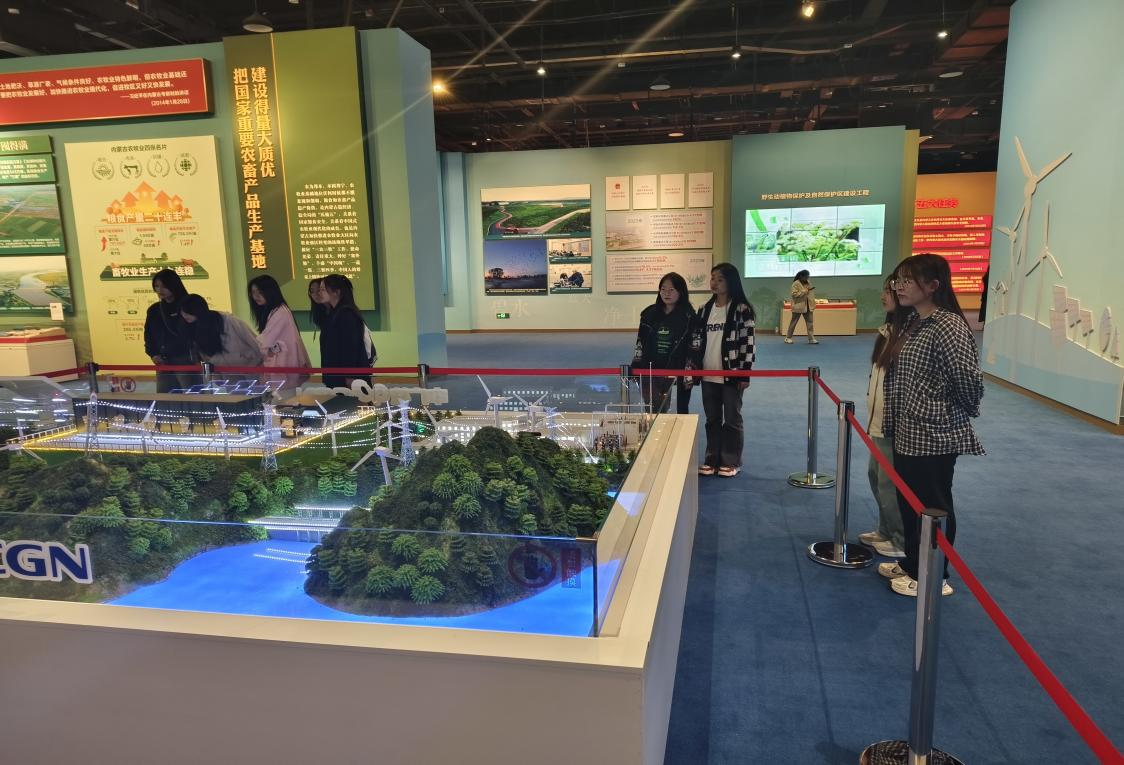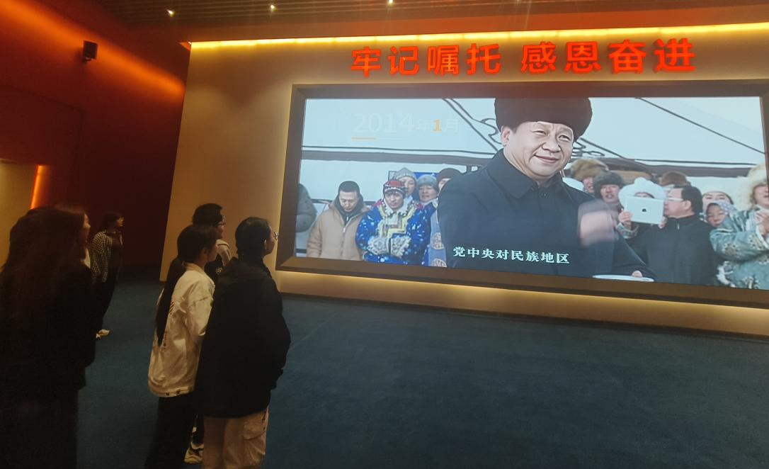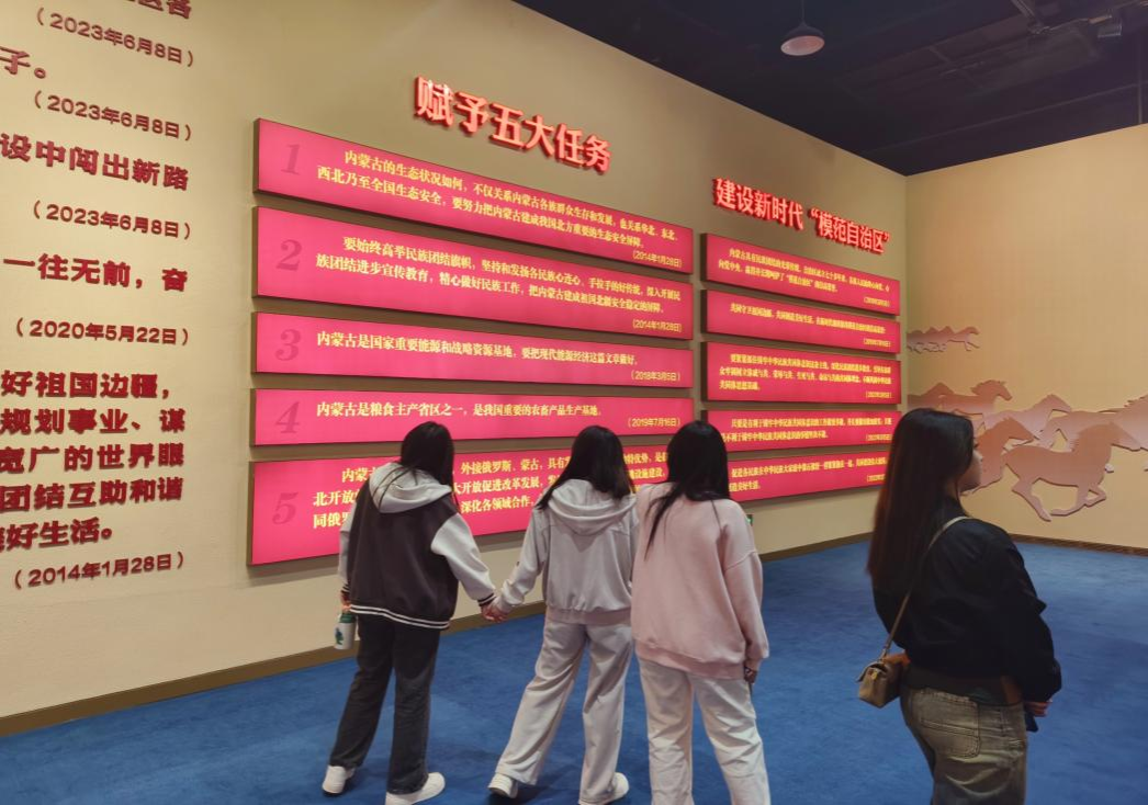 本次展览以“牢记嘱托 感恩奋进——办好两件大事 奋力书写中国式现代化内蒙古新篇章”为主题,通过观看图片、文字和实物展品、数字多媒体及沙盘等形式,使同学们更加直观领会了五大任务和全方位建设“模范自治区”的深刻内涵以及《关于推动内蒙古高质量发展奋力书写中国式现代化新篇章的意见》的重大部署要求,更加深切体悟了习近平总书记对内蒙古的深情关怀和厚爱期许,进一步凝聚了“感党恩、听党话、跟党走”奋进合力。