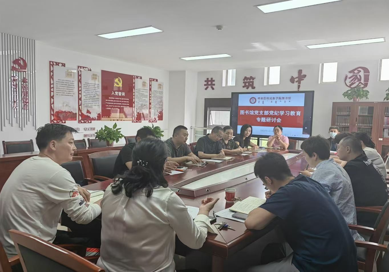 5月16日,图书馆党支部在图书馆五楼党员活动室开展了党纪学习教育系列活动,活动由支部书记郝喜凤主持,机关党委群工委员胡斯勒到会指导。