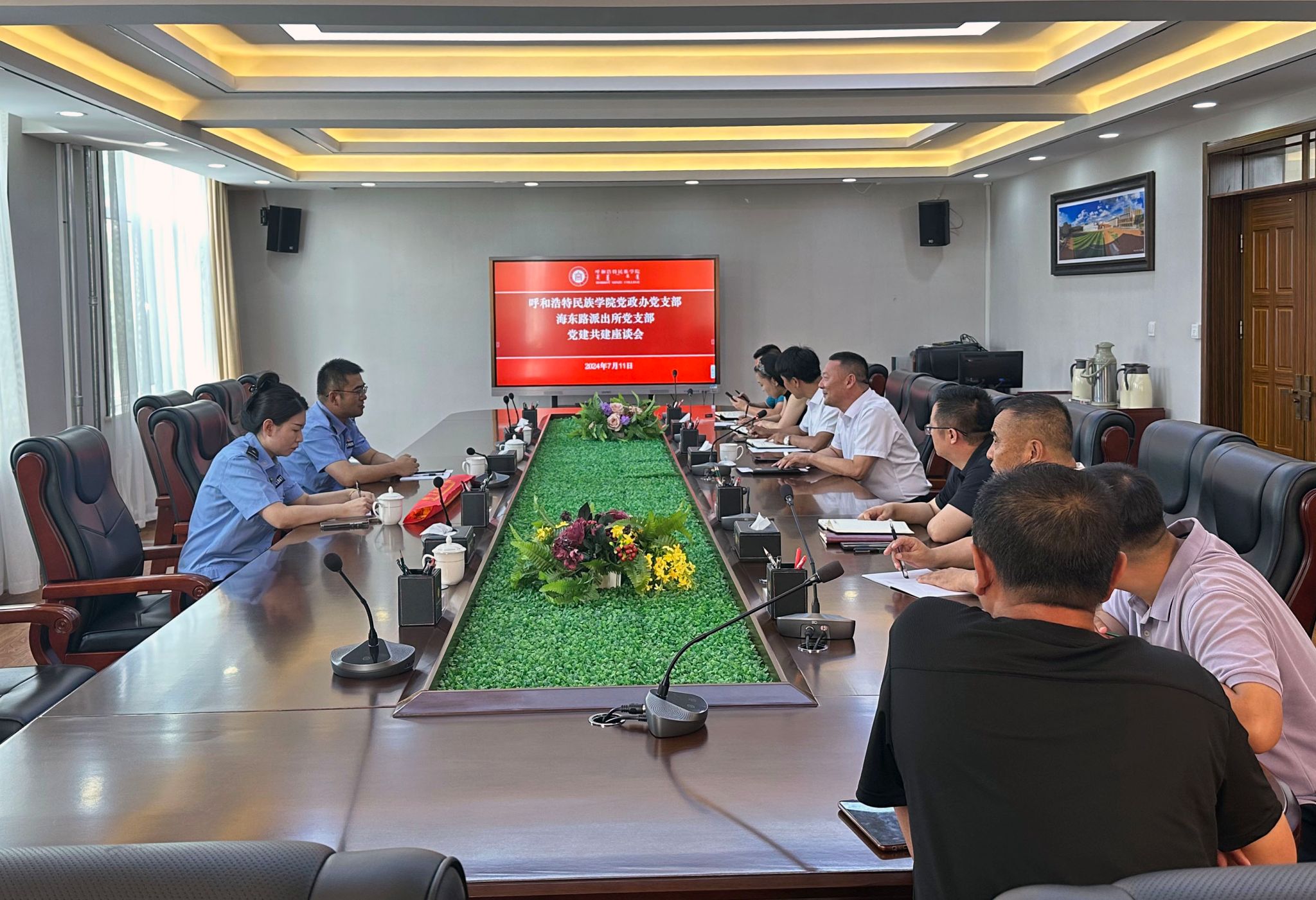 7月11日,党政办党支部与海东路派出所党支部在办公楼会议室开展党建共建座谈会。