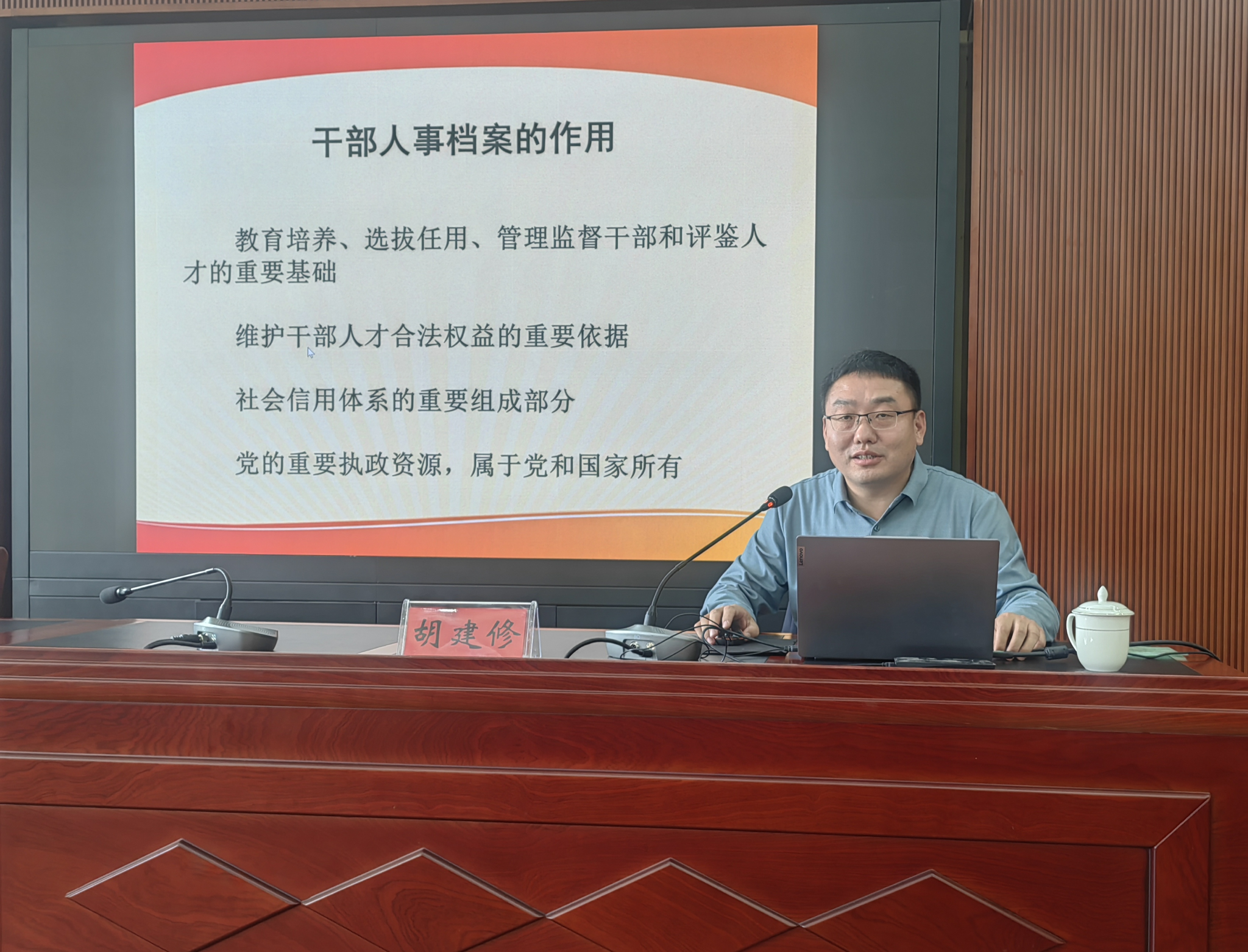 受学校邀请自治区党委组织部信息服务中心副主任、三级调研员胡建修作辅导报告。他从对干部人事档案的作用、档案审核的时机与范围、档案审核的内容、档案审核的重要性、档案审核过程中遇到问题的处理、审核工作的评价标准、查阅人事档案的内容、审核干部信息常用方法、常见风险点和审核方法等方面进行了详细讲述。讲座生动鲜活,既有理论深度,又有案例分析,加之现场提问的互动环节。参训人员表示,此次培训有效提升了大家对人事档案工作的认识,提高了业务能力和专业素养,为持续提升干部人事档案工作科学化、制度化、规范化水平奠定了坚实的基础。