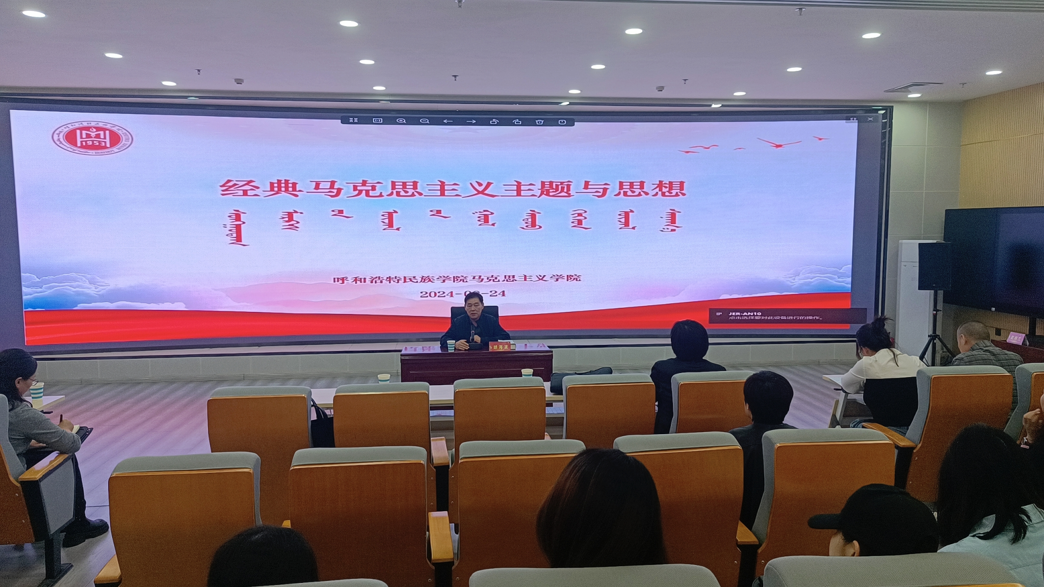 9月25日,系列讲座迎来了最后一场,主题为“经典马克思主义主题与思想——关于费尔巴哈的提纲”。胡海波以费尔巴哈的提纲为切入点,深入剖析了马克思主义与旧唯物主义的区别和联系,进一步阐明了马克思主义的实践观和认识论。他的讲解条理清晰、逻辑严密,为学生们提供了一个新的视角来审视和理解马克思主义。