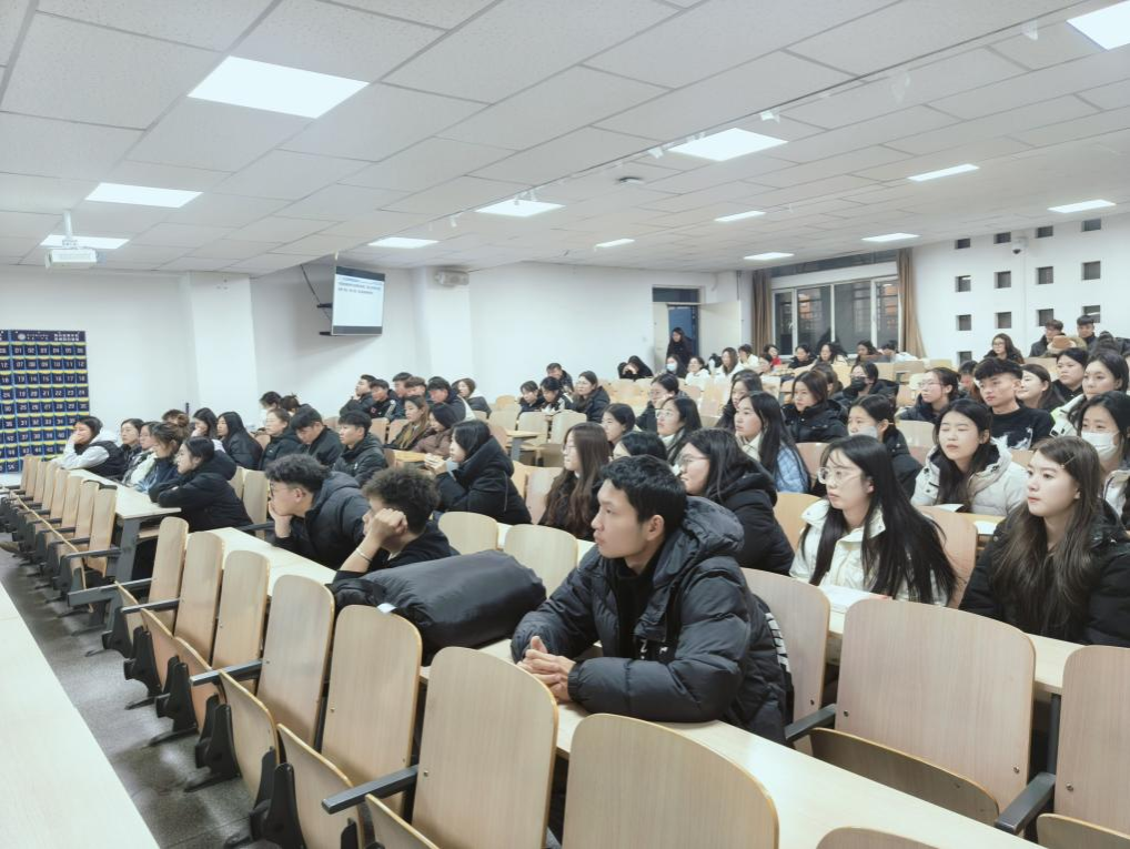 开班式后,主讲教师付强聚焦大学生就业的核心议题,涵盖就业形势、就业规划、面试技巧等内容,运用大量实际案例,为同学们进行了深入细致的讲解与分析。同学们全神贯注地聆听,积极与老师互动交流,现场气氛热烈。