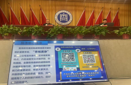 为进一步增强师生防范电信网络诈骗意识,提升安全防范能力,4月15日,学院在学术报告厅举办了"揭秘电信诈骗套路,筑牢高校安全防线"安全教育专题讲座。本次讲座邀请呼市公安局反诈中心民警赵书锐担任主讲,音乐与舞蹈学院党总支副书记白银亮主持。