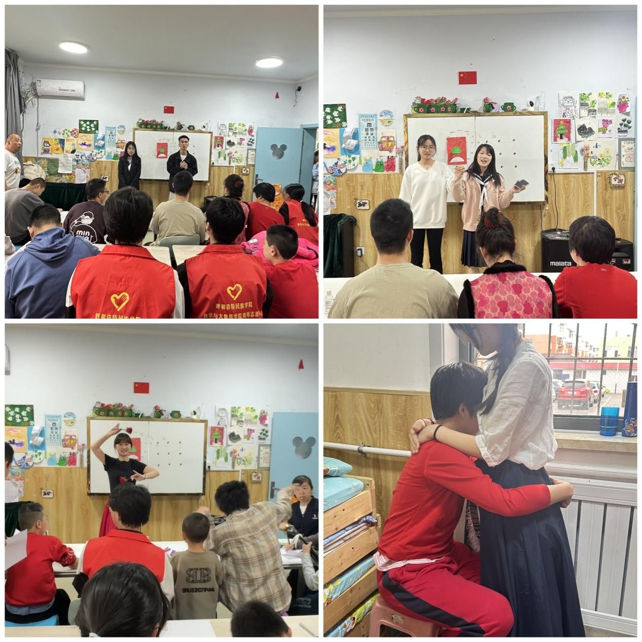 志愿者们积极组织节目表演、绘画创作与小朋友们互动、玩耍,倾听他们讲述内心世界,激发孩子们的想象力与创造力,丰富他们的精神文化生活,让公益助残中心的教室里充满了欢声笑语与活力。