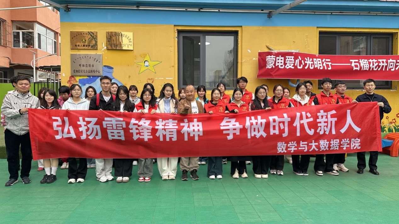 4月18日,数学与大数据学院组织学生走进呼和浩特市爱加倍星儿公益助残中心,开展“弘扬雷锋精神,争做时代新人”主题志愿服务活动。学院党总支副书记朝克图、团总支书记额日合木以及党员、团员、“青马工程”(2025年)培训班学员代表近30人参加此次活动。