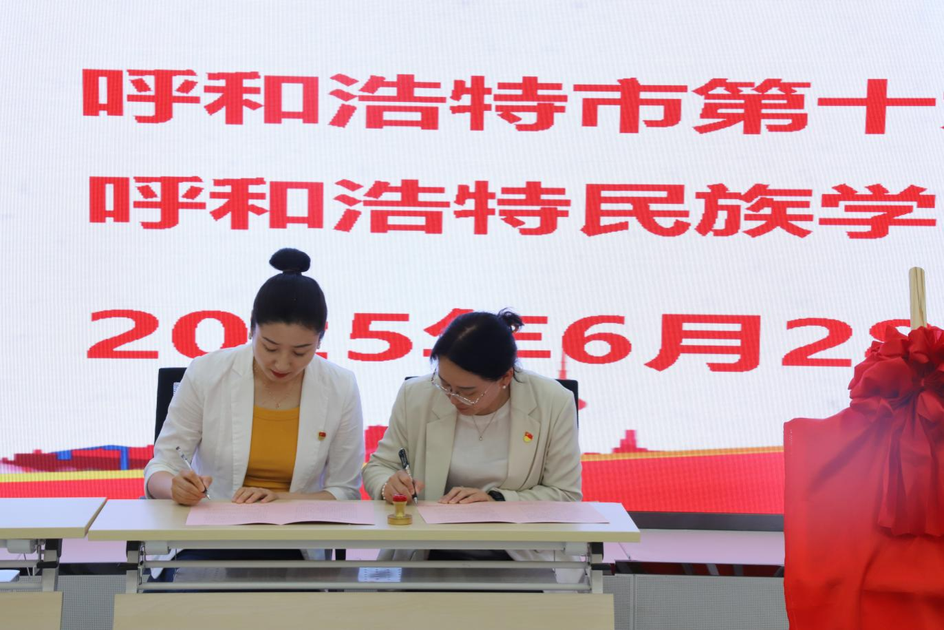 观展结束后,吴美荣与呼和浩特市第十九中学书记蒋华共同签署党建共建单位协议。这份协议的签署,标志着双方在党建合作方面迈出了坚实的一步,为今后在党建工作经验交流、党员联合培养、党建活动共办等多方面的深入合作奠定了基础。