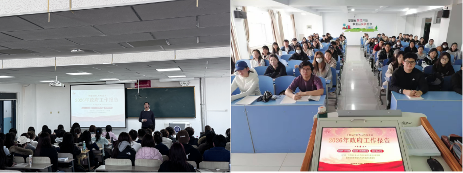 为帮助青年学子深刻领会2026年两会精神实质,准确把握我国民主的本质与优势,进一步坚定制度自信、筑牢理想信念,近日,马克思主义学院紧扣两会精神育人内涵,以2026年政府工作报告解析为核心牵引,以“毛泽东思想和中国特色社会主义理论体系概论”“中国近现代史纲要”两门思政课程为载体,以宣讲为抓手,面向2024级、2025级全体学生共计4000余人系统开展两会精神专题宣讲。