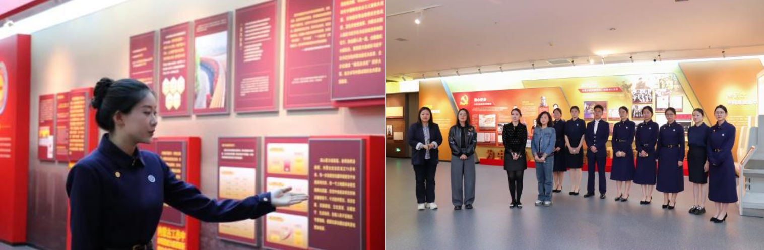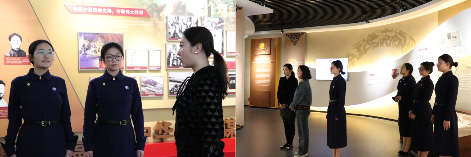 培训会后在教育馆展厅开展实践教学,优秀讲解员陈宣锦进行示范展示,5名新成员分组模拟实地讲解。