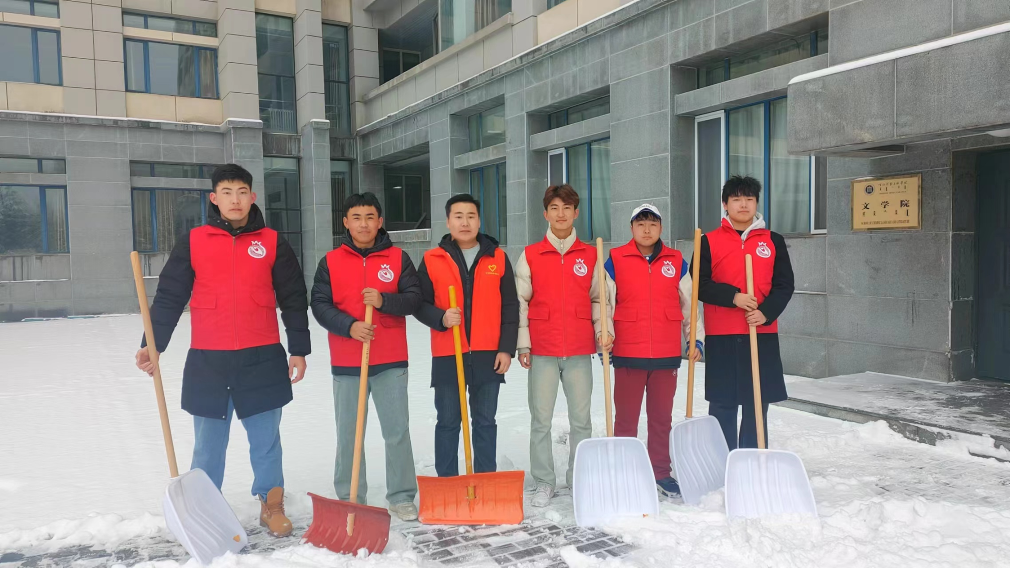 为进一步弘扬“奉献、友爱、互助、进步”的志愿者精神,在开学第一天,为维持道路通畅,保障校园师生正常通行,培养学生热爱劳动、乐于奉献的精神风貌,2月27日,文学院组织师生志愿者在尚智楼周围主要道路开展校园除雪活动。
