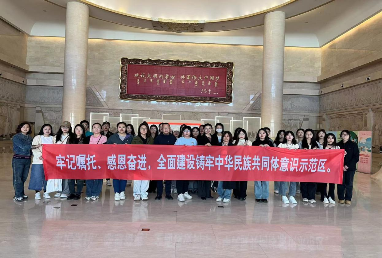 为做好学校铸牢中华民族共同体意识教育馆的内容讲解、实践教学工作,4月19日,在“民族政策宣传月”到来之际,统战部、文学院、马克思主义学院赴内蒙古博物院开展“牢记嘱托、感恩奋进,全面建设铸牢中华民族共同体意识示范区”教育培训活动。文学院党总支书记李宏亮、副院长高娃、统战部副部长高帆、马克思主义学院思政课教师、文学院“北疆小红马”讲解团和“文音荟萃,同心同语”普通话推广实践团成员共37人参加活动。