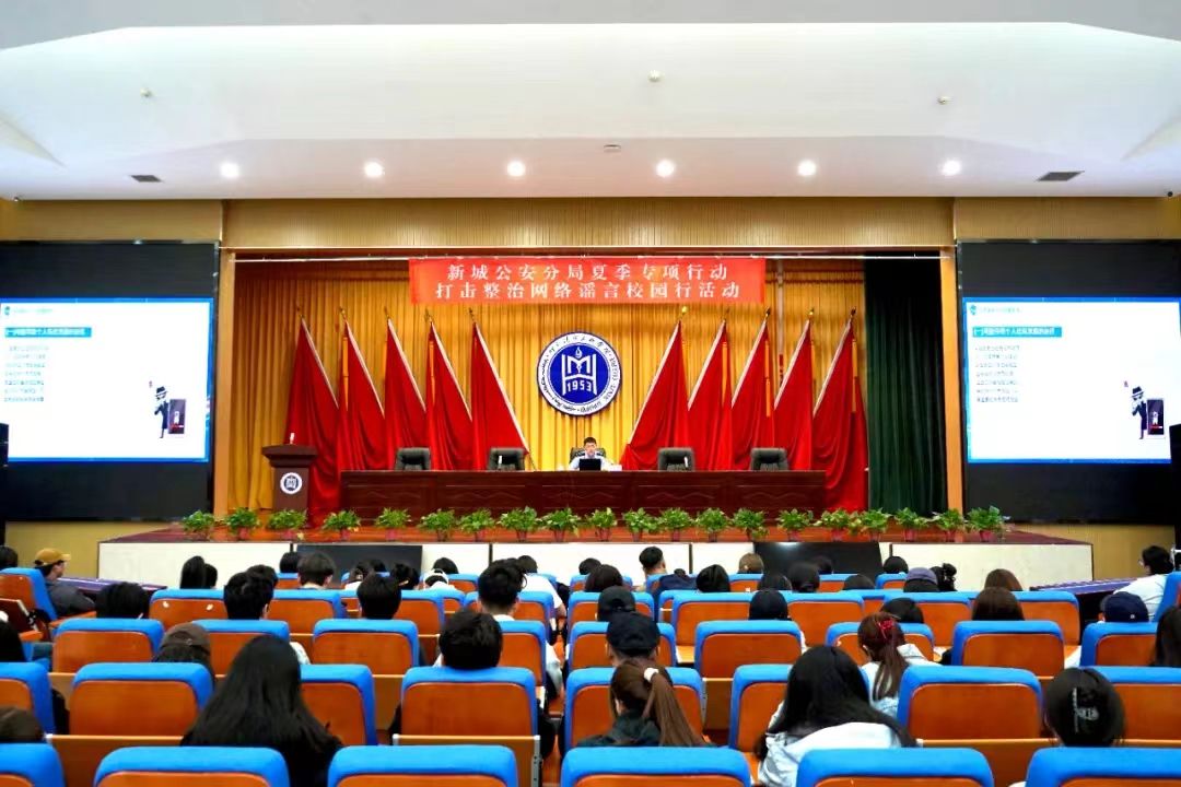 为深入推进国家网络信息安全周活动,教育引导青年学生牢固树立网络安全意识,筑牢网络安全屏障,9月11日下午,校团委邀请新城区公安分局网安大队张臣皓警官来米乐官网作“网络安全为人民,网络安全靠人民”专题讲座。校团委全体成员及各学院学生代表200余人聆听讲座。