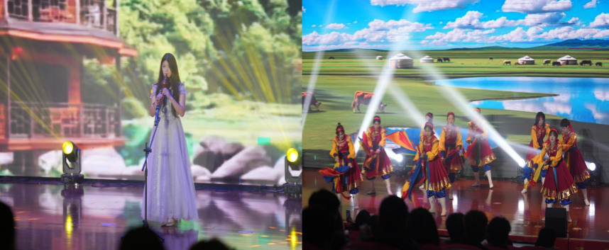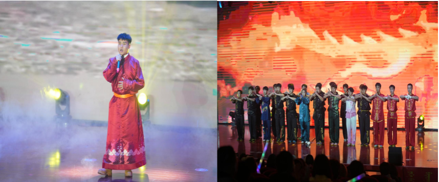 晚会在激昂的马头琴曲中拉开帷幕,节目内容丰富多样,涵盖群舞、独舞、独唱、三重唱、葫芦丝独奏、舞狮表演、诗朗诵、情景剧、武术表演、拉丁舞、健身操、合唱等多种形式。
