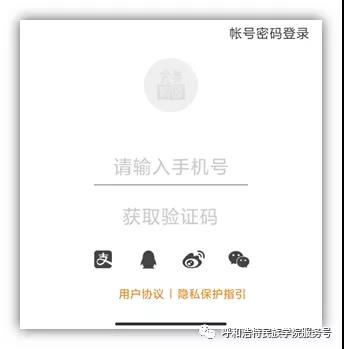 学生及教职工账号为学号或工号,其他人员账号为手机号。默认密码为身份证号后六位,X用1代替。