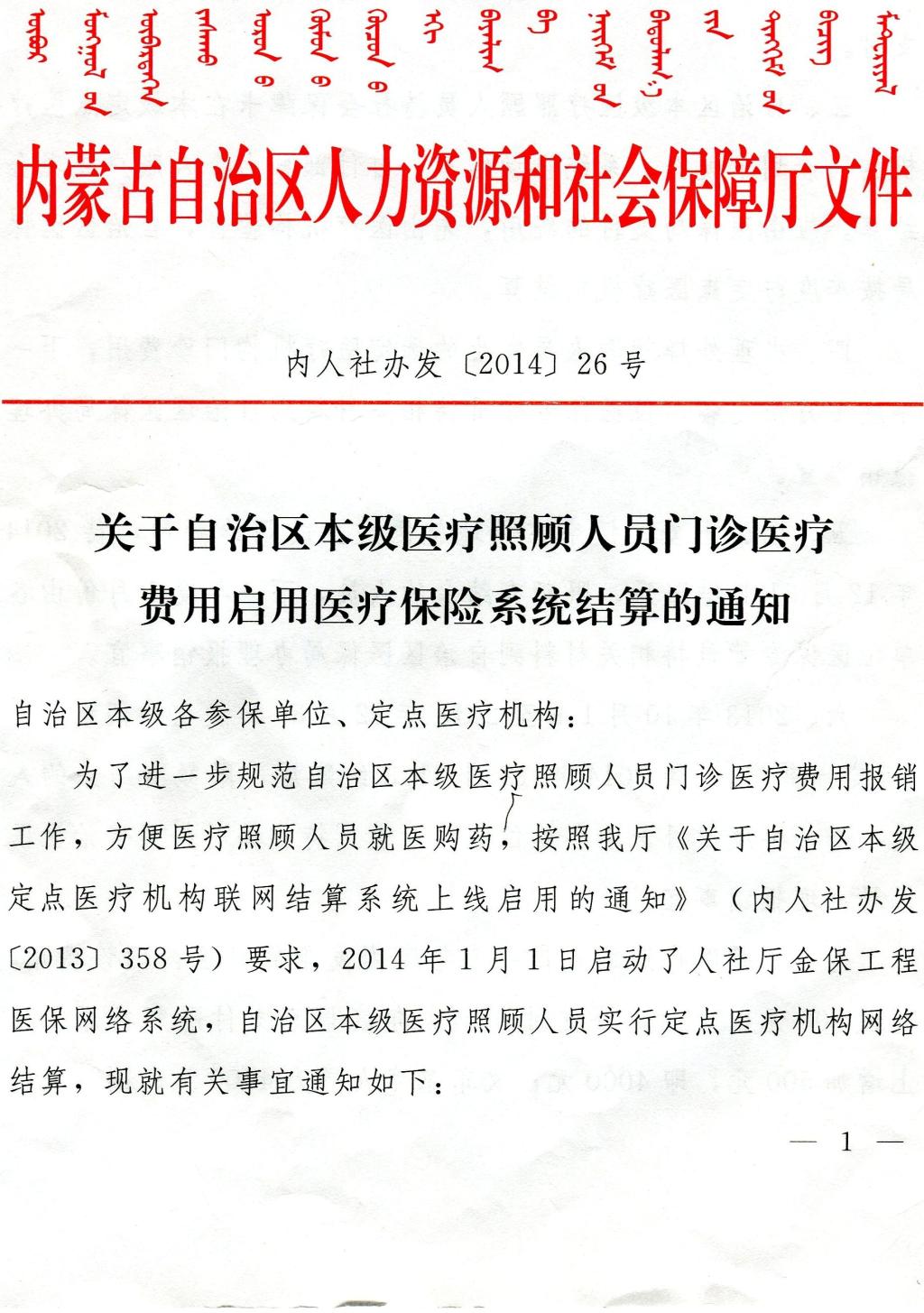 关于自治区本级医疗照顾人员门诊医疗费用启用医疗保险系统结算的通知