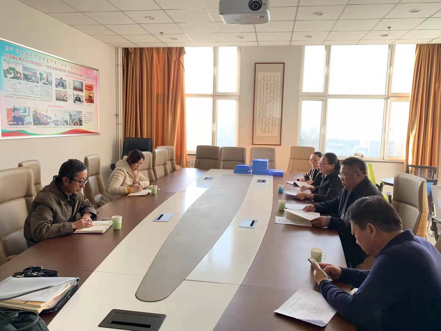 11月11日上午,在综合楼807室(黄大年式教师团队讨论室)召开数学与大数据学院领导班子关于“不忘初心、牢记使命”主题教育调研成果交流会,就近期调查研究成果进行深入交流。会议由党总支书记布和朝鲁教授主持,院长王海清、党总支副书记郝喜凤、总支统战委员吴晓红、学生支部宣传委员马宏宇、组织委员金玲、教师代表金国海博士参加会议。学校主题教育第三指导组组长海泉处长和副组长红梅副书记到会指导。