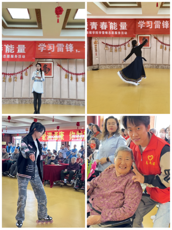 3月23日,数学与大数据学院团总支组织党团员志愿者走进呼和浩特市福康老年公寓,开展“弘扬雷锋精神,汇聚青春能量”主题志愿服务活动, 为老人们带来一场洋溢着温暖与欢乐的文艺慰问演出活动。