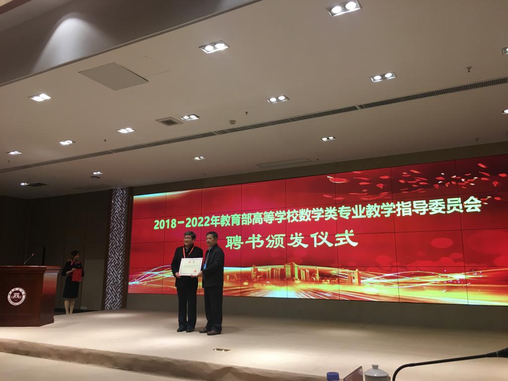 在本次会上,首先由教育部委托教育部高等学校数学类专业教学指导委员会主任委员郑志明院士颁发教指委聘书,米乐官网阿拉坦仓教授再次当选新一届高等学校数学类专业教学指导委员会委员。2018-2022年教育部高等学校教学指导委员会涵盖了2个综合类、109个专业类和40个分教指委,集中了高等教育方面的权威专家,“教学能力强、学术造诣高”为基本的任职条件,是高等学校教育教学工作的最高专家组织。各教学指导委员会接受教育部委托,将开展高等学校教育教学研究、咨询、指导、评估和服务等工作。