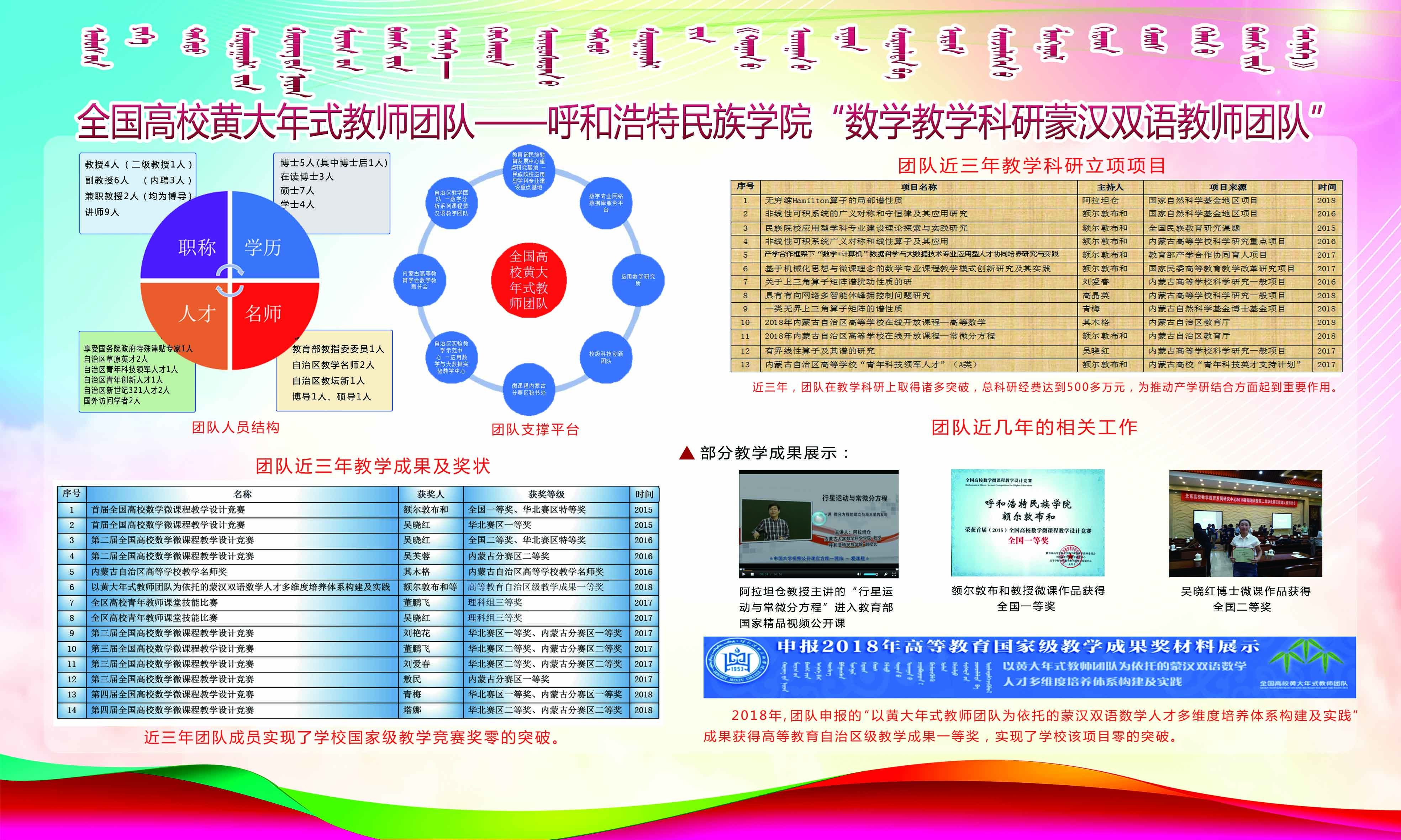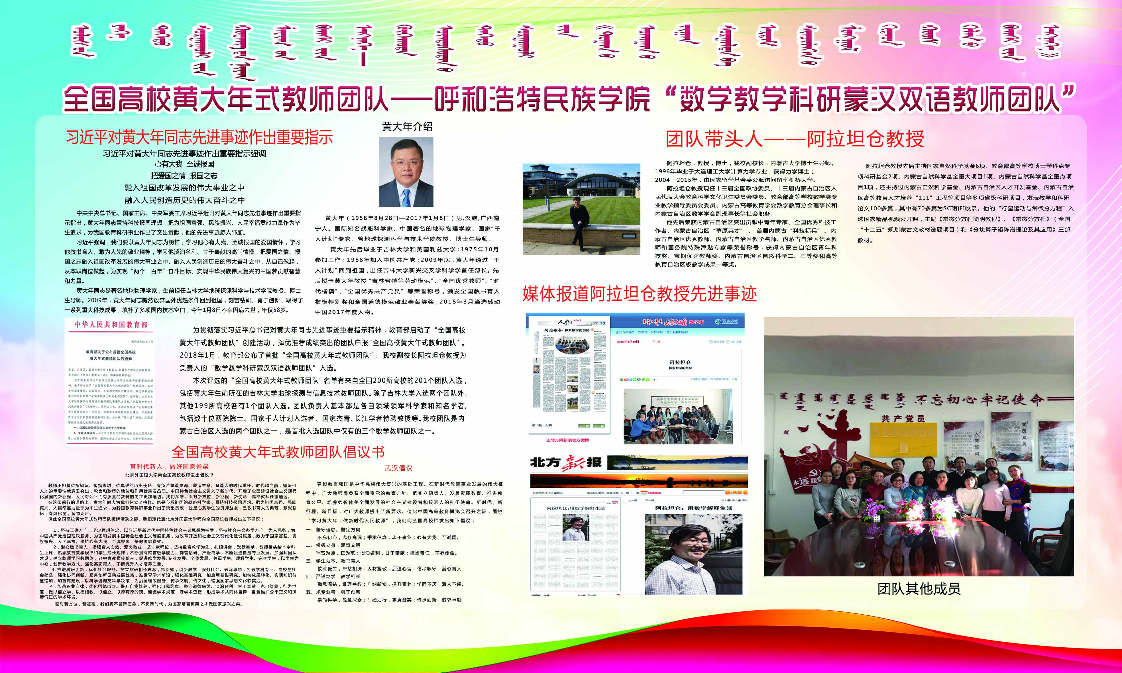 全国高校黄大年式教师团队——MILE米乐集团“数学教学科研蒙汉双语教师团队”