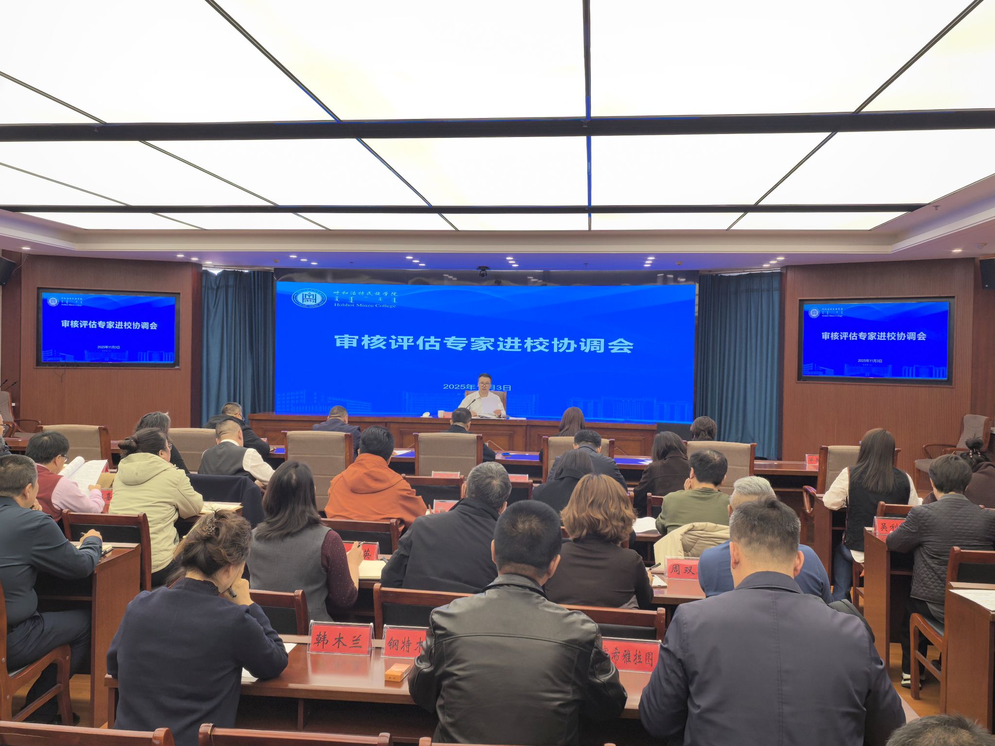 11月3日,学校在综合楼12楼会议室召开审核评估专家进校协调会。校党委委员、副校长额尔敦布和主持会议并部署相关工作,各职能部门及二级学院负责人参加会议。