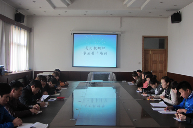 4月20日上午,马列教研部“青年马克思主义者培养工程”学生骨干培训班开班暨首场培训报告在美术楼会议室举行。部领导,学生党员、团学干部、班干部和学生宿舍长等40余人参加此次培训。