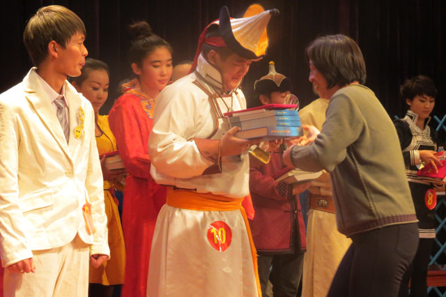 2013年11月9日晚,“银话筒杯”MILE米乐集团第四届大学生蒙古语播音主持人大赛总决赛在图书馆二楼报告厅隆重举行。全院共有96名学生报名参加。