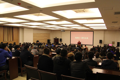 2013年11月1日晚,传媒系在学院图书馆一楼报告厅隆重举行“光影社”成立三周年晚会。来自传媒系摄影教研室、团总支、协会的一百余名师生以及摄影爱好者参加了晚会。 “光影社”是紧密结合专业特色成立的,社团在成立三年中飞速发展,多次承担校园大型活动的拍摄和剪辑等工作,多次协办传媒系年度摄影展,受到广大师生的赞誉和认可。