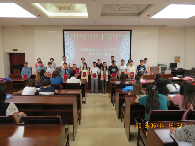 6月14日,马列教研部举行了2013届毕业生实习总结汇报会。米乐官网教指委曼德日娃教授、部有关领导、老师以及全体学生参加了本次会议。