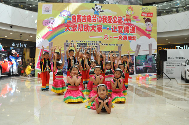 在六一儿童节到来之际,我系义工协会志愿者与内蒙电台、天使公益基金会、布奇乐乐园、小橘灯义工等爱心团体一起在万达广场参加义卖活动,并捐赠了作业本、小玩具。所募集到的物资,全部捐献给山区小学。市内各大幼儿园的小朋友带来了精彩演出,积极响应“大家帮助大家•让爱传递”的号召。
