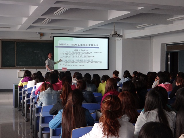 为缓解我系2013届毕业生离校前的焦虑心情,集中解决他们在毕业前择业中面临的突出问题,外语系团总支于2013年5月9日11点在新教学楼618教室召开了“2013年毕业生就业工作会议”。外语系副主任苏日嘎拉图教授、团总书记包仓出席了会议。