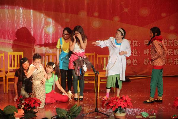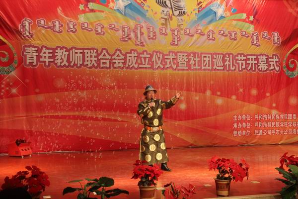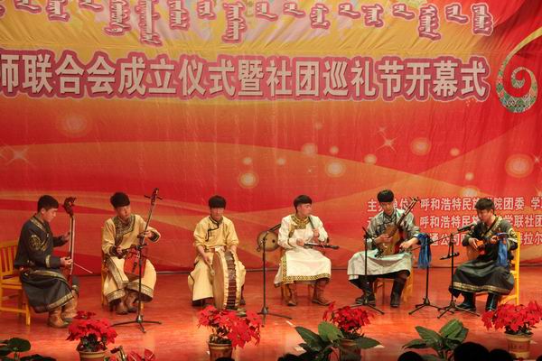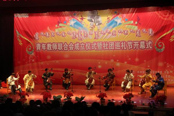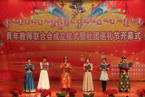 本次晚会以马头琴齐奏“万马奔腾”拉开序幕,接下来由各个社团协会精心策划的节目相继登台表演,各社团以舞蹈、小品、歌曲、原生态艺术、四胡演奏、魔术、口技、诗朗诵等艺术形式,展现了当代大学生活力充沛、朝气蓬勃、昂扬向上的精神风貌,引起现场观众的强烈共鸣,博得热烈的掌声,本次晚会还有环境工程系团总支负责人斯琴毕力格、音乐系乌日娜等青年教师为大家带来美轮美奂的歌曲。最后,晚会在在团委郭晨老师、蒙古语言文学系团总支负责人程钢老师、音乐系团总支负责人张超老师、传媒系团总支负责人齐丹老师、音乐系乌日娜老师的合唱《为内蒙古喝彩》的歌声中落下帷幕。
