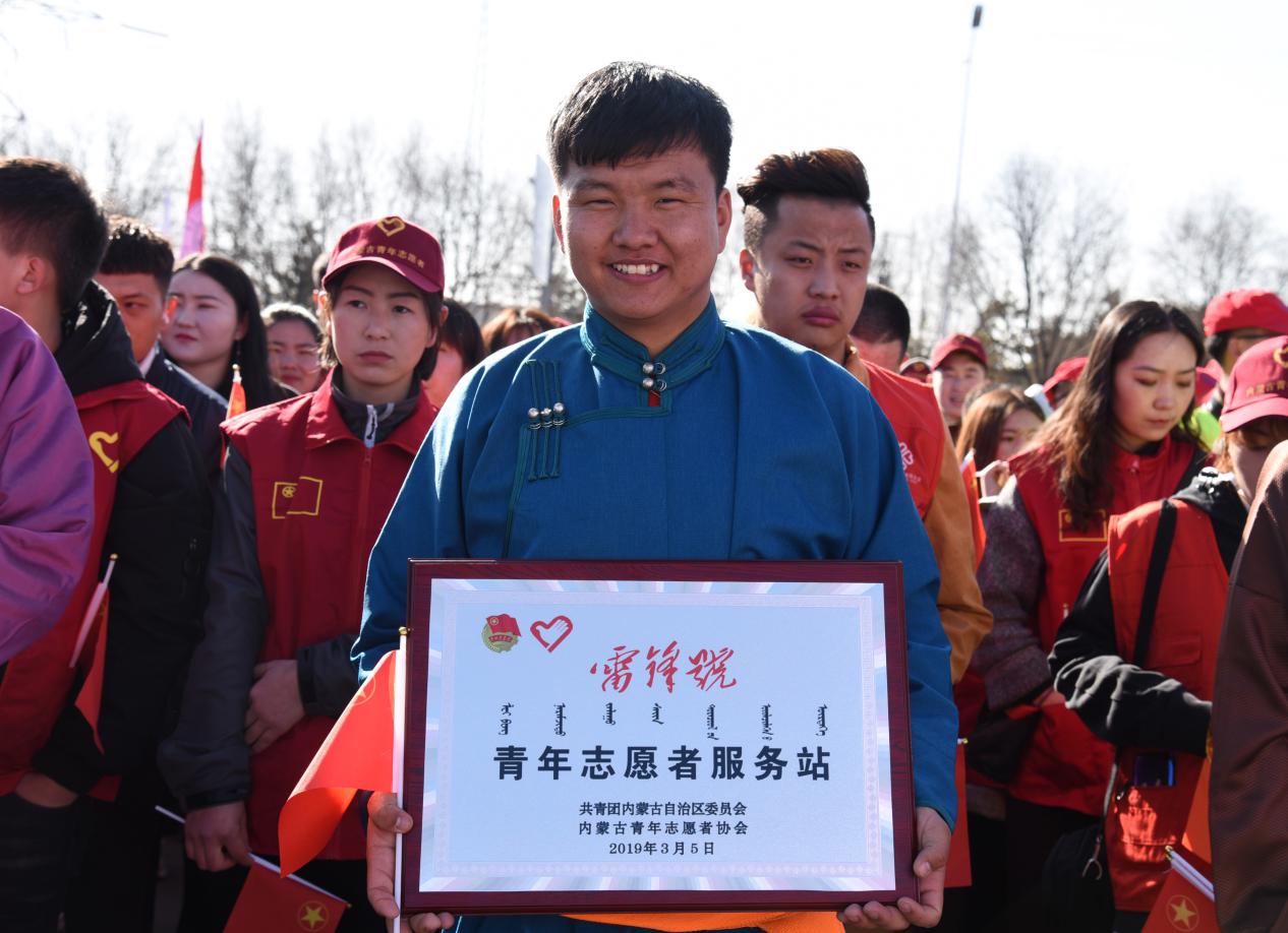 为庆祝新中国成立70周年,以习近平新时代中国特色社会主义思想为指导,深化社会主义核心价值观建设,展示青年志愿者在各个领域助力亮丽内蒙古建设的良好风貌。3月5日上午,由自治区团委、内蒙古青年志愿者协会联合自治区文明办、扶贫办、生态环境厅、体育局、教育厅、文化与旅游厅等部门共同举办的“青春建功70载 志愿服务亮北疆”暨“我为十四冬代言,助力亮丽内蒙古”全区学雷锋主题志愿服务活动在内蒙古博物院广场启动。米乐官网选派200名大学生志愿者参加了本次活动,启动仪式上,自治区团委、内蒙古青年志愿者协会为米乐官网志愿服务队授予“雷锋号” 青年志愿者服务站称号。