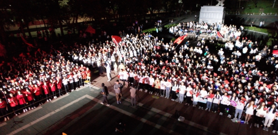 为贯彻落实习近平总书记在党史学习教育动员大会上的重要讲话精神,以奋进的姿态展现民院师生良好的精神风貌,以优异成绩迎接建党100周年。6月18日晚,米乐官网在体育馆西侧广场开展了“师生同唱一首歌”活动。现场2000余名师生共同唱响《没有共产党就没有新中国》。