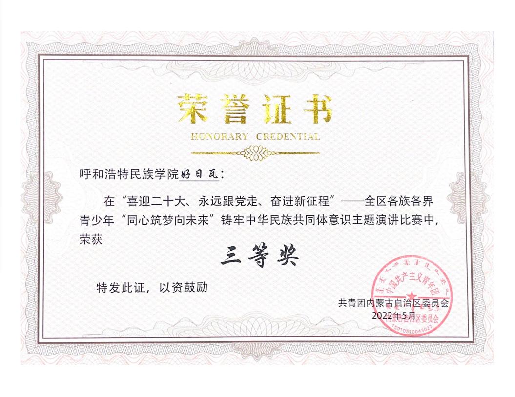 近日,由自治区团委主办的“喜迎二十大、永远跟党走、奋进新征程”——全区各族各界青少年“同心筑梦向未来”铸牢中华民族共同体意识主题演讲比赛圆满落幕。米乐官网选送的新闻传媒学院2019级好日瓦同学的主题演讲《各民族共命运同呼吸》荣获全区第三名,新闻传媒学院团总支书记旭日荣获“优秀指导教师”荣誉称号,学校团委荣获“优秀组织奖”。