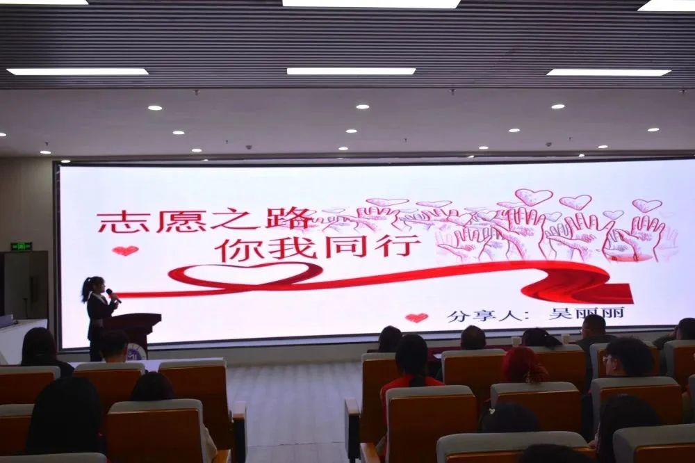 分享会在庄严的国歌声中拉开序幕。志愿者们从环境保护、抗疫服务、支教感悟、“返家乡”服务等多个领域分享了志愿服务故事,向同学们介绍了积极参与志愿服务工作的现实意义和重要性,并鼓励同学们在学有余力的同时,主动投身社会服务,贡献青春力量。学校志愿者服务队队长吴丽丽倡议广大青年积极参加志愿服务活动,弘扬雷锋精神,做志愿服务的实践者和传播者。现场志愿者们齐唱团歌,纷纷表示将积极投身志愿服务,有一份力发一份光,用责任传递爱心,用奉献促进和谐。