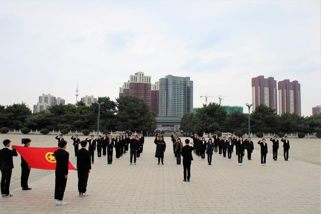 在庄严肃穆的氛围中,全体师生肃立在革命烈士纪念碑前默哀,深切表达对革命先烈们的追思之情。学生代表向革命烈士敬献花篮,抒发对革命先烈的无限哀思和崇高敬意。